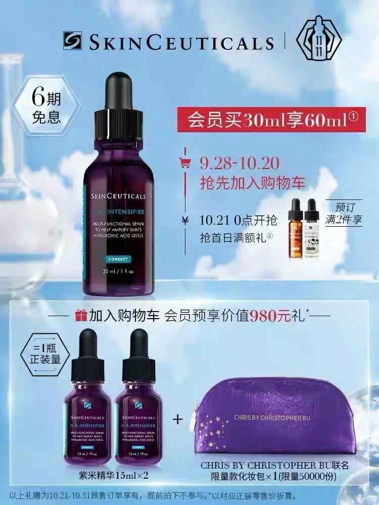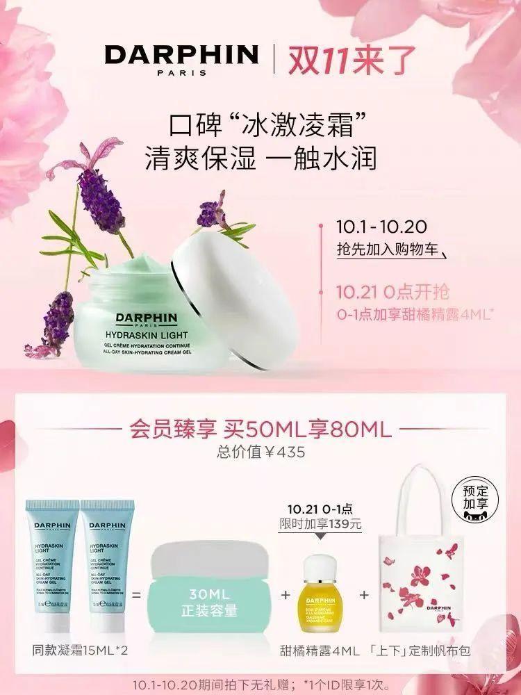 禮贈:①買50ml送60ml同款小樣(30ml*2),實(shí)際到手110ml;②活動價419元,可領(lǐng)30元優(yōu)惠券,雙十一跨店滿減40元,實(shí)際到手349元。