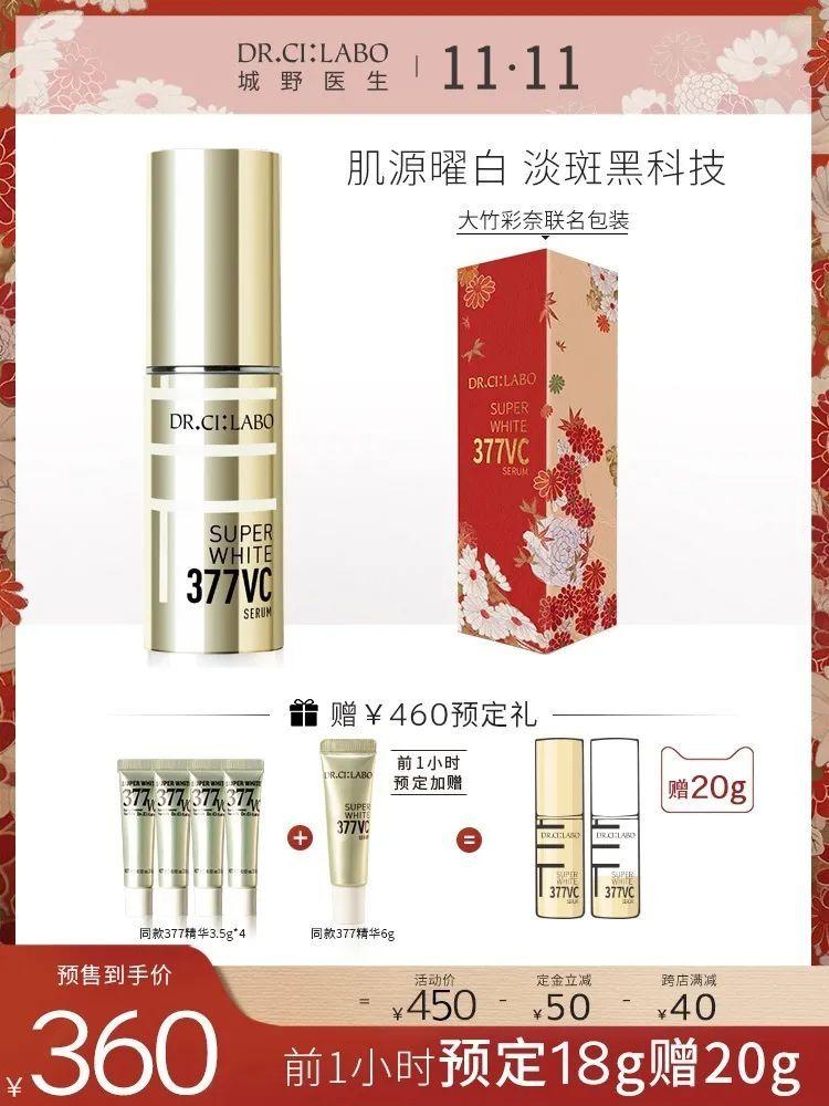 禮贈:①買18g正裝,送20g同款小樣,實(shí)際到手精華38g;②原價500元,雙十一活動價450元,下定金立減50元,參加跨店滿減(滿300-40,可減40元),實(shí)際到手價格360元
