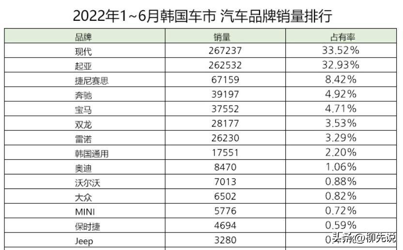 下面依據(jù)機(jī)構(gòu)整理出來的數(shù)據(jù),來了解下韓國汽車市場情況,看看韓國消費(fèi)者到底喜歡什么汽車品牌。2022年上半年,韓國車市汽車品牌銷量排行榜第14名是Jeep,市占率0.41%。Jeep汽車品牌創(chuàng)立81年時間,被不少人視為SUV的代名詞。品牌堅(jiān)持磨礪越野基因,憑借骨子里的自由、探索、本真、激情,帶領(lǐng)人們共同追尋對世界純粹的熱愛;韓國車市汽車品牌銷量排行榜第13名是保時捷,市占率0.59%。