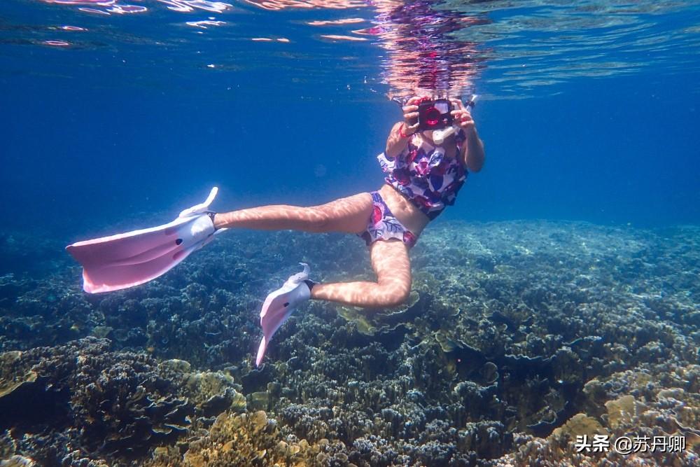 當(dāng)時(shí)同行的朋友就說我傻,為什么不涂防曬霜呢?其實(shí),我確實(shí)夠傻的,為了讓自己在水中看起來像一條魚(主要為了拍照),竟然沒有穿上水母衣。 但關(guān)于涂防曬霜,我還是不忍心傷害這一片藍(lán)色大海的。