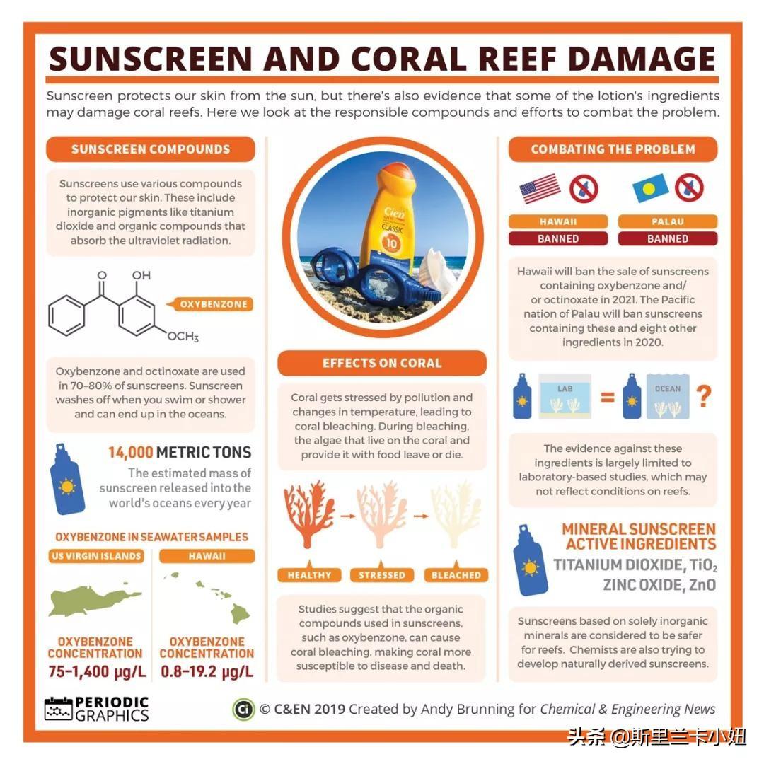 2018年,美國夏威夷州州長簽署了美國第一項(xiàng)禁止含有對(duì)珊瑚礁有害化學(xué)物質(zhì)的防曬霜的法案,禁止銷售含有氧苯酮和桂皮酸鹽的防曬產(chǎn)品,該法案將在2021年1月1日正式生。