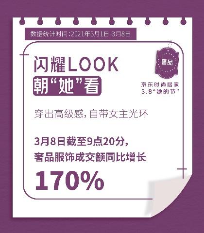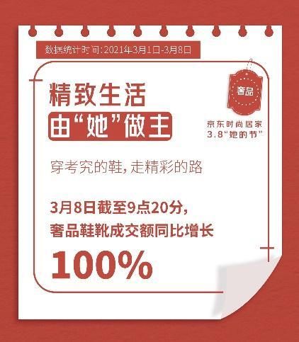 “她的節(jié)”是專屬女性的狂歡節(jié),作為主角的她們從頭到腳展現(xiàn)了自己的時尚與品味。3月8日截至9點20分,京東腕表成交額同比增長110%,用腕間時尚裝點女神氣質(zhì);奢品服飾成交額同比增長170%,奢品鞋靴成交額同比增長。同時菲拉格慕自營旗艦店店鋪成交額同比增長,PINKO自營旗艦店店鋪成交額同比增長270% 。
