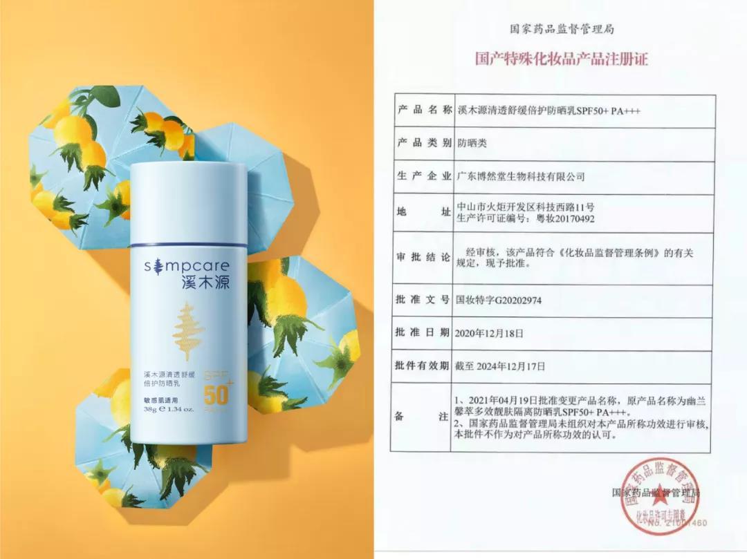 有一個例子可以直觀地呈現(xiàn)這個布局之早——持著需要花費一到兩年甚至更長時間才能拿到手的美白特證、防曬特證,溪木源在今年上線了美白特證櫻花面膜、防曬特證敏肌高倍防曬乳。