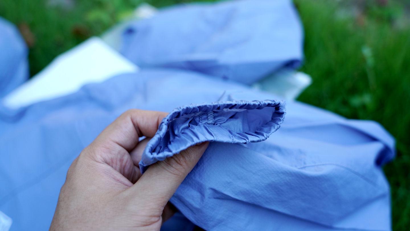 具有彈性,可通過(guò)抽繩調(diào)節(jié)的下擺好用,在不同的光線下,這款防曬衣的湖藍(lán)色有時(shí)候還會(huì)呈現(xiàn)出一點(diǎn)點(diǎn)偏紫色,也挺好看。