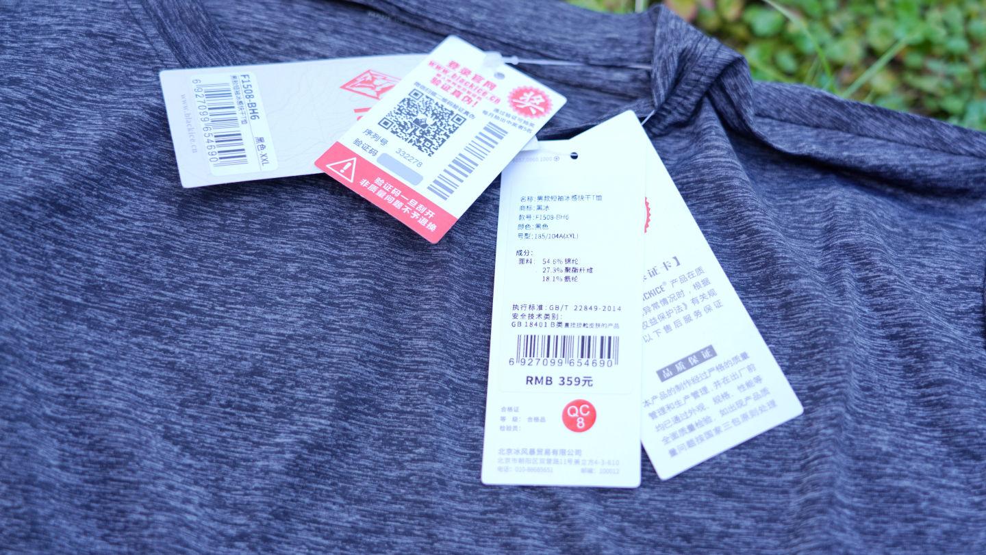 和第一件T一樣,顏色,標(biāo)牌,LOGO都是幾乎一樣。由于并不是采用的聚酯纖維材料,而是用了錦綸+氨綸+聚酯纖維的材料組成,讓這款T的帶來(lái)了更冰涼的觸感,重量上比剛才的T重了17g,這也是輕薄到幾乎可以忽略不計(jì)的差異。