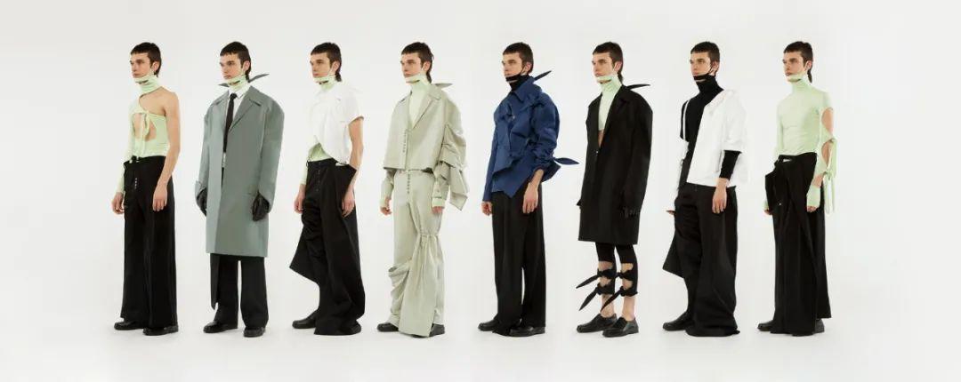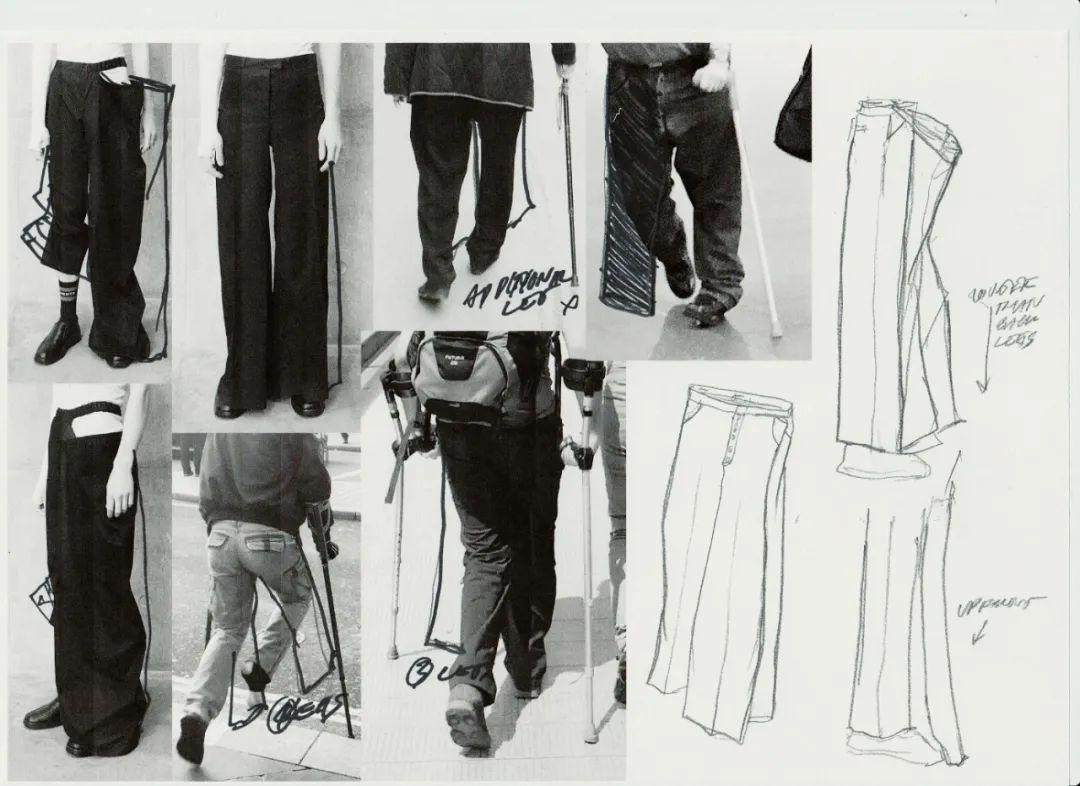 通過日常拍攝公共場(chǎng)合殘障人士、調(diào)研他們不自然的走路方式、記錄病人不同部位的包扎方式,strong the將這些都轉(zhuǎn)化成了自己服裝設(shè)計(jì)中的結(jié)構(gòu)與廓形。