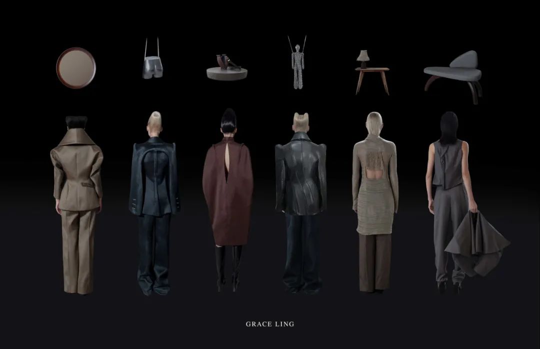 在Grace ling的世界中,往往沒有中規(guī)中矩的線條。在她的認(rèn)知中,服裝可以無框無形態(tài)無邊界,同時(shí)又存在于這世界上的任何生命體之中。