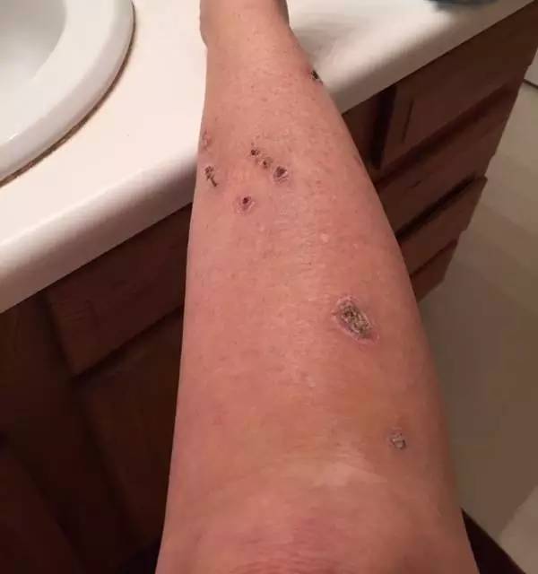(小腿上還有更多黑色素瘤,手術(shù)后被包起來,必須一天24小時抬著不能動)