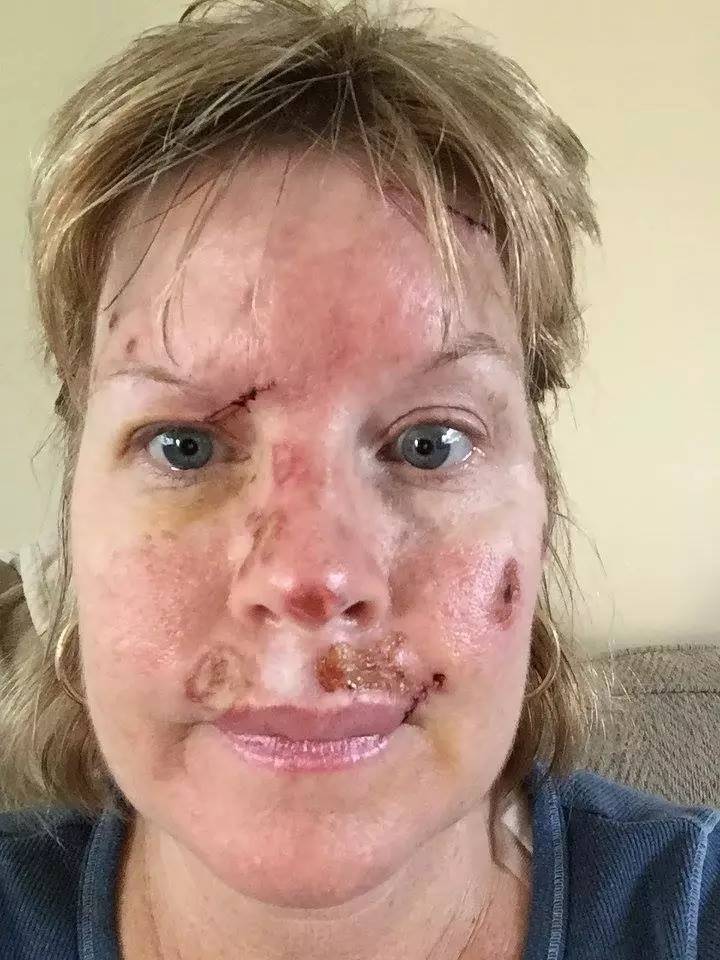 就得了皮膚癌。她在Facebook曬出了自己做完手術(shù)到恢復(fù)的照片,就為了告訴大家,曬太陽要涂防曬霜?。。?!