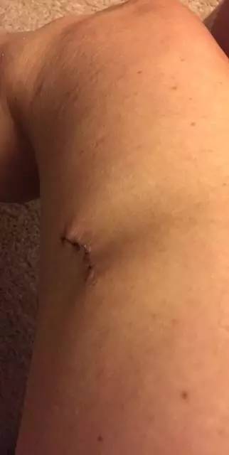 (術(shù)后第13天,大腿內(nèi)側(cè)的傷疤)