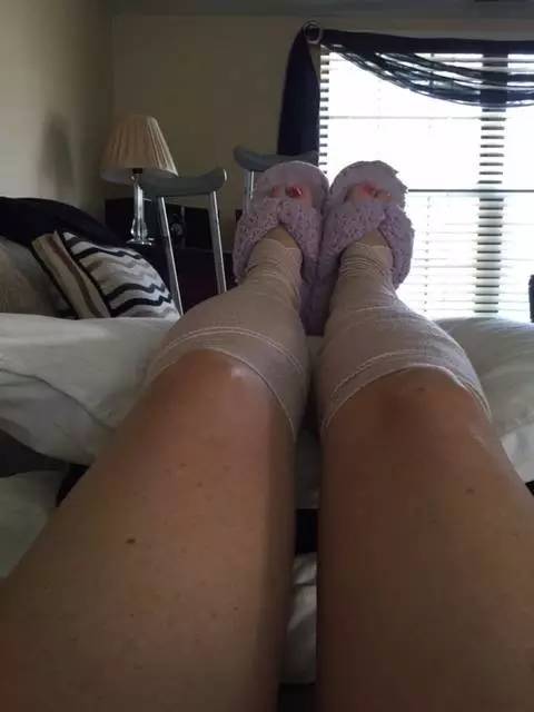 (術(shù)后第17天,小腿終于能見光了??茨前甙唿c(diǎn)點(diǎn)……這里恢復(fù)的慢)