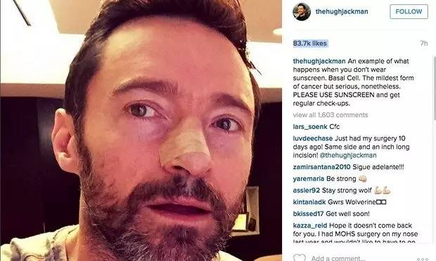 狼叔出生在悉尼,和咱新西蘭發(fā)病率差不多,兩國一直在爭誰第一誰第二……小時候的狼叔為了保持硬漢形象(誤),很少涂防曬,經(jīng)常被曬傷,導(dǎo)致了他被查出患有4種皮膚癌,而且很可能無法根治……