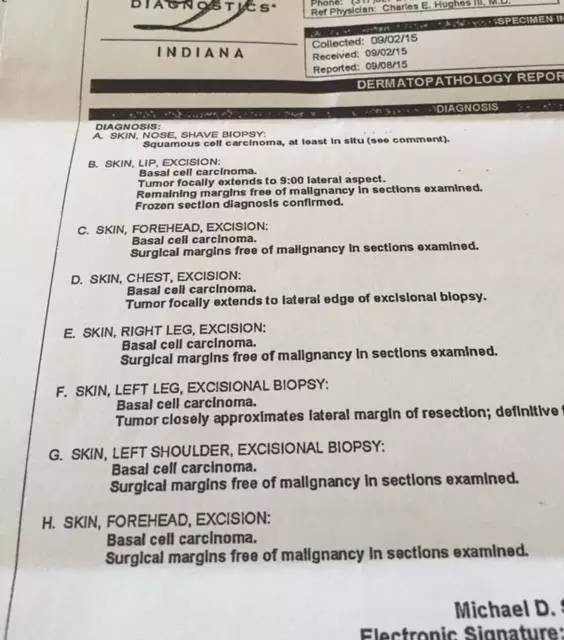 皮膚癌這東西是個纏人的小妖精,今年47歲的狼叔,三年來已經(jīng)做過5次基底細(xì)胞癌切除手術(shù)了……