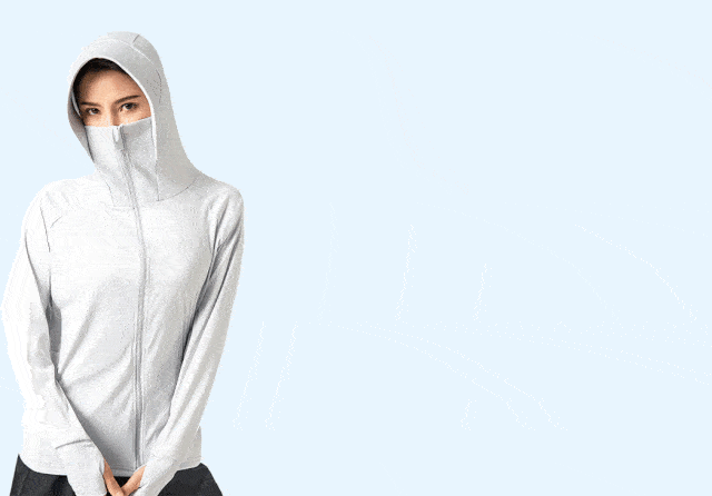 衣領(lǐng)升高一截,拉上拉鏈立馬擁有一個防曬面罩,一直防到眼角。