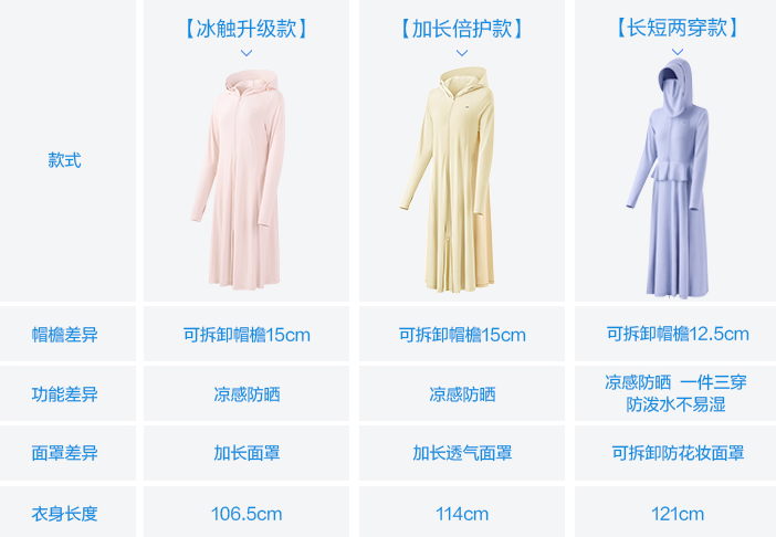 301S(上)為斗篷款,寬松式下擺,走路會帶風,更加涼爽。