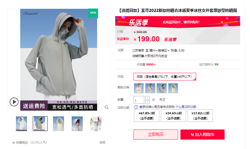 茉尋防曬衣官網(wǎng)價格并不便宜,原價的話就不推薦了,但是做活動后性價比還是很高的,醬醬之前在某個直播間以39的價格入手過。