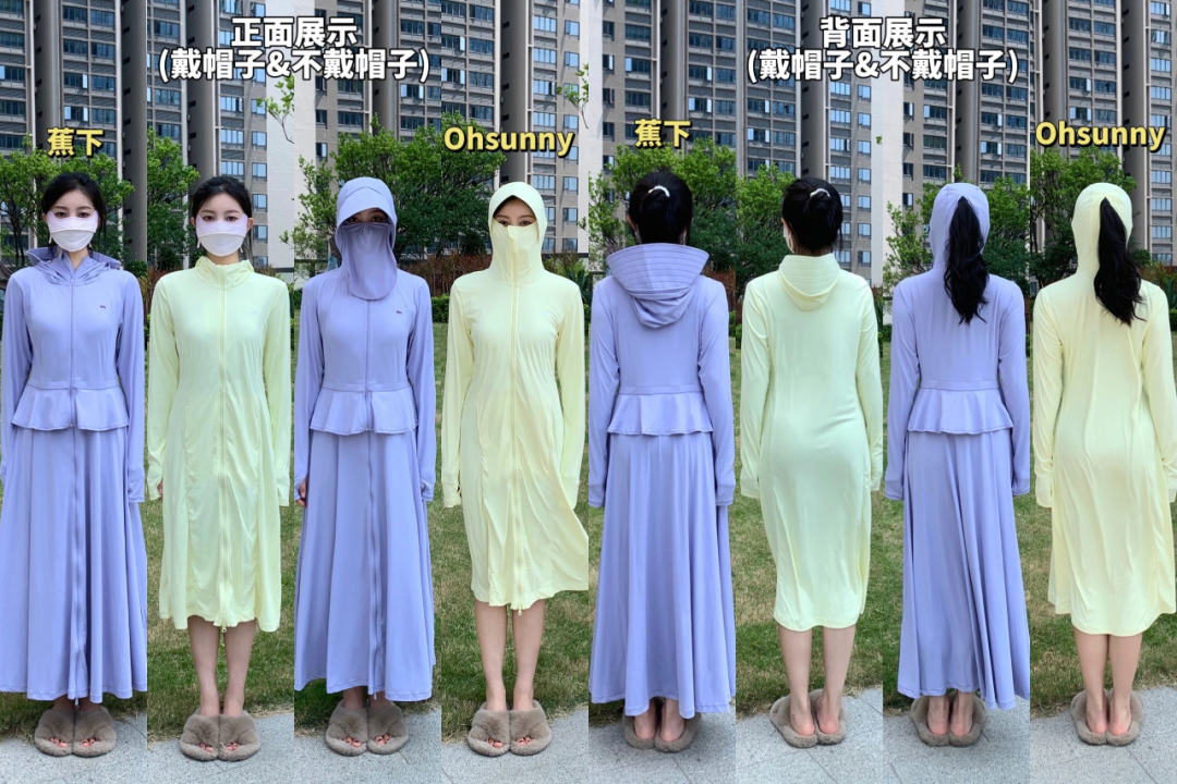 和蕉下長款防曬衣相比,oh家的版型會更顯瘦一些。