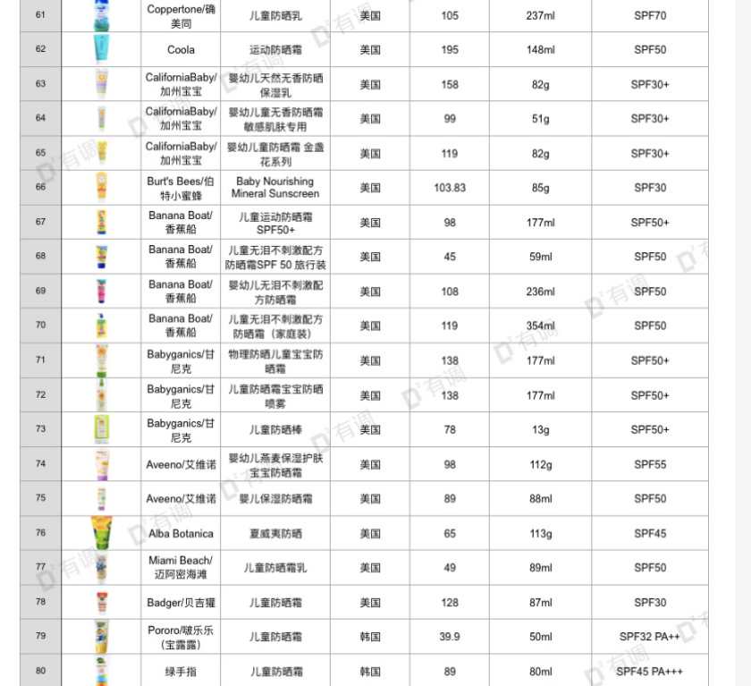 前沿拓展:品牌兒童防曬霜
