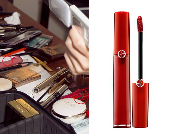 楊冪的桌上足足有5支阿瑪尼的紅管唇釉出鏡!左側(cè)一支偏豆沙玫瑰調(diào)的,應(yīng)該是501#,另外右邊當(dāng)中可以肯定的是阿瑪尼的正紅色400#。