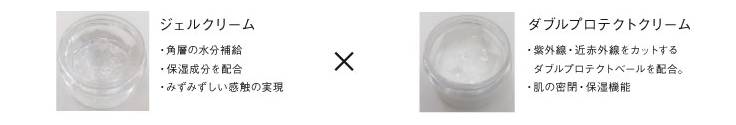 將【具有水潤觸感的和保濕成分的啫喱】與【對(duì)近紅外線和紫外線起的雙重防護(hù)乳】混合配方。