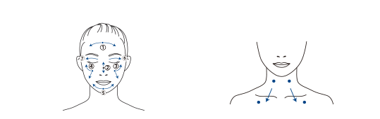 取一粒珍珠大小的分量在面部分5點(diǎn),由中央位置向外涂抹均勻。