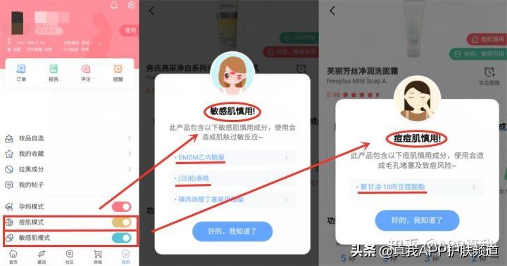 大家可以和小編一樣,在選擇產(chǎn)品之前用真我APP的“痘肌模式”篩選一下。這個模式可以自動判斷產(chǎn)品中,是否含有不適合油痘肌使用的成分,小編就是直接打開它,才能快速的找到這么多適合的產(chǎn)品。像敏感肌也有專門的模式哦!大家可以選擇使用!