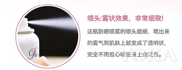 補起防曬來輕松,噴霧細(xì)膩,吸收快又很輕薄,即使在上妝后補也不擔(dān)心花妝!而且更適合隨手塞到隨時攜帶的包包里面。