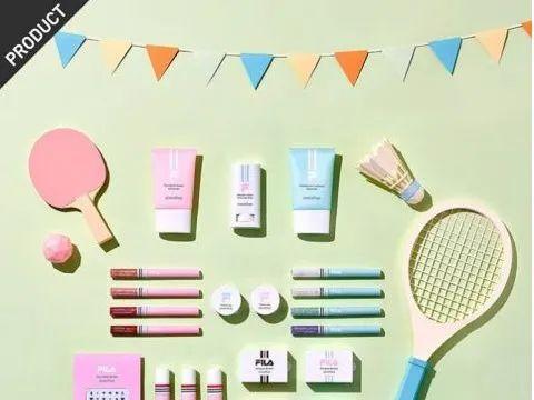 2019年,韓國彩妝護膚品牌Innisfree與運動品牌FILA聯(lián)手推出“運動會EDITION”,產(chǎn)品包括防曬、唇彩、眼影、眼蜜以及蜜粉等,應用了FILA經(jīng)典的紅藍彩色線條,將運動和元氣體現(xiàn)在包裝上。