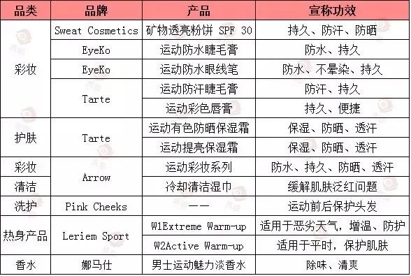 市面上的運動美妝產(chǎn)品