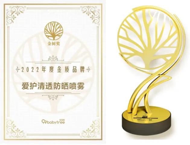 本網(wǎng)訊,2022年12月14日,寶寶樹(shù)2022-2023金樹(shù)盛典盛大開(kāi)啟。在歷時(shí)了半個(gè)月的緊張角逐、評(píng)選后,第八屆寶寶樹(shù)金樹(shù)獎(jiǎng)年度榜單在盛典上正式揭曉頒獎(jiǎng)。愛(ài)護(hù)憑借年度口碑爆品——『愛(ài)護(hù)清透防曬噴霧』榮獲本屆“年度金質(zhì)品牌”大獎(jiǎng)。