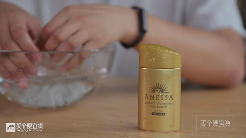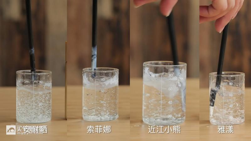 從結(jié)果來(lái)看,碧柔、Allie、水寶寶在剛?cè)胨畷r(shí)能保持不散開(kāi),但攪拌后出現(xiàn)了部分溶解現(xiàn)象,量杯內(nèi)呈渾濁液狀態(tài),說(shuō)明其防水性能一般,適合日常生活里擦拭。而作為對(duì)比,其余4款防曬霜均表現(xiàn)優(yōu)異,攪拌后量杯內(nèi)依然清澈,底部形成一粒粒鎖水小珠,并且可以自由滑動(dòng),游泳或者海島旅行常備它們是十分必要的。