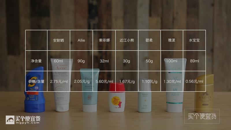 我們終的建議依然是:既要防水又要性能不錯(cuò)的,安耐曬金瓶佳,但缺點(diǎn)是涂抹起來(lái)略油,需要一定的卸妝工具。清爽度和防曬的桂冠當(dāng)屬嘉寶娜旗下的Allie,缺點(diǎn)是防水性能一般,不建議在泳池內(nèi)長(zhǎng)時(shí)間使用。當(dāng)然,如果覺(jué)得以上兩者的價(jià)格顯得略高,大范圍涂抹身體性價(jià)比過(guò)低,那么便宜又大碗的碧柔則是日常攜帶的利器了。