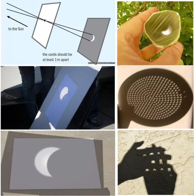 各種簡易成像法觀察日食 | 圖片來源:www.timeanddate.com和其他