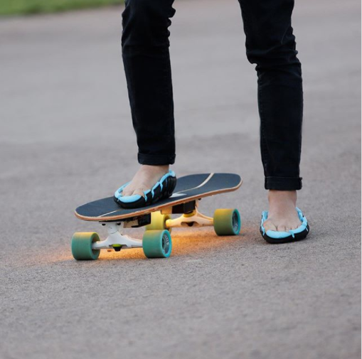 這是一種固定在腳上的鞋底,具有特殊的卷曲側(cè)面。