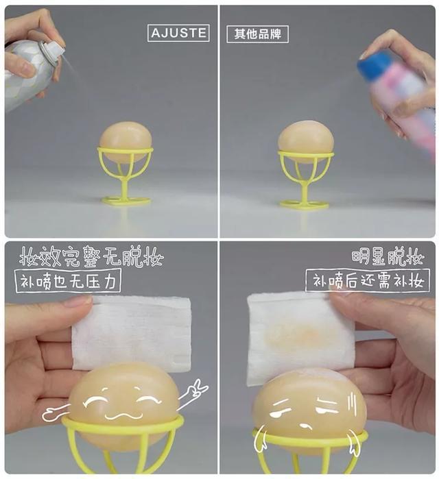 這款防曬不僅防曬果好,它的定妝果也是超棒的!我們做過一個簡單的對比試驗,發(fā)現(xiàn)愛伽絲防曬噴霧可直接充當(dāng)定妝產(chǎn)品,噴到臉上幾乎是不脫妝的呢~