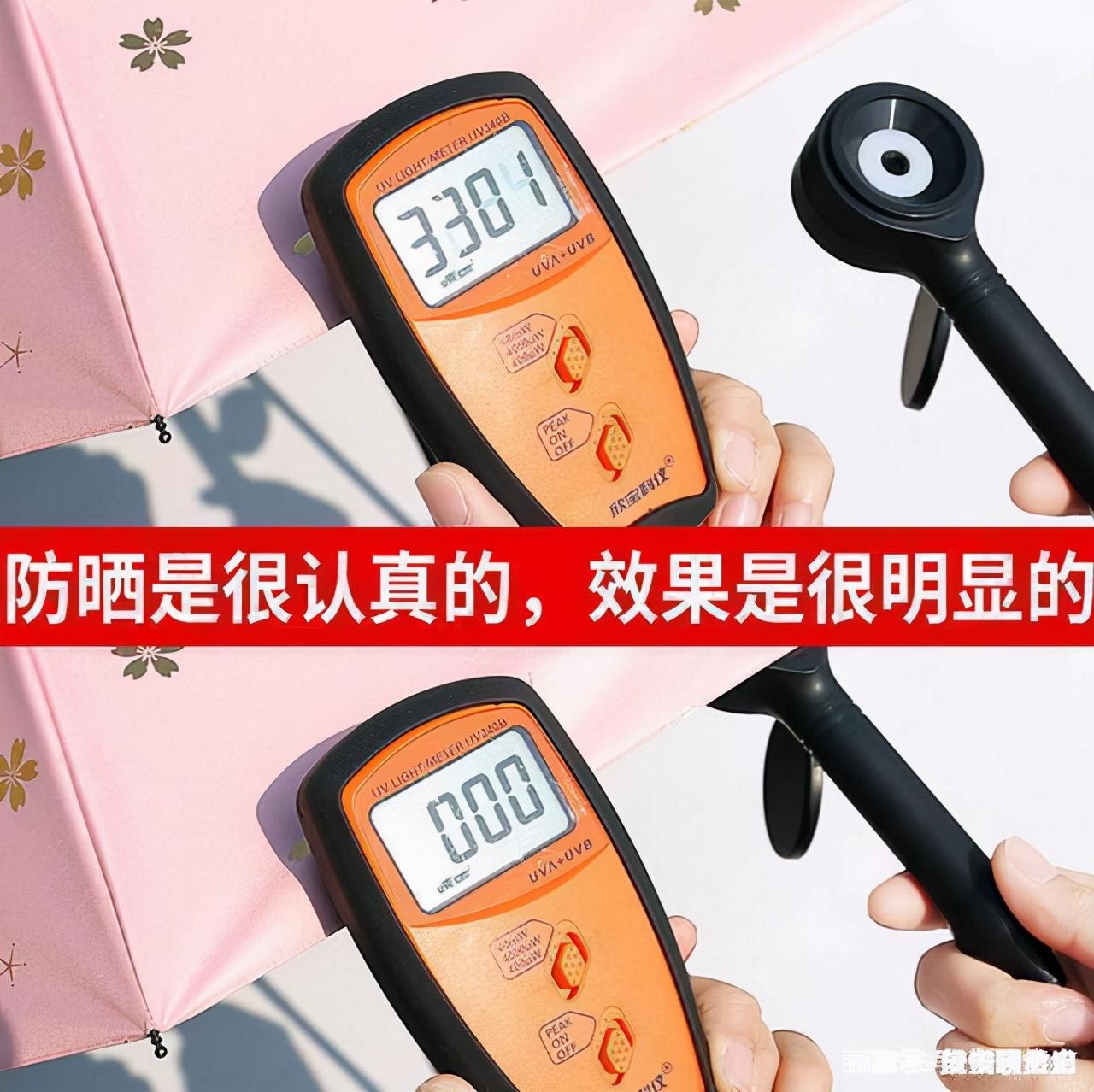 咱們運(yùn)用強(qiáng)光照耀的時(shí)分,它也是密不透光的,直接完勝周圍其他品牌的傘!