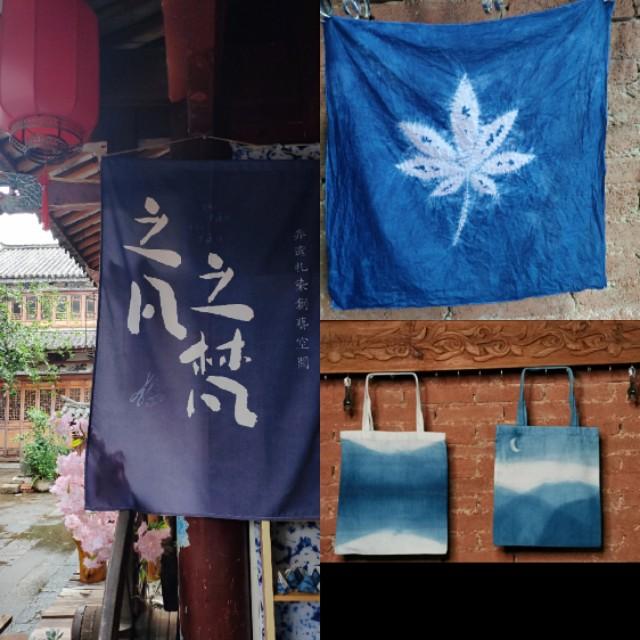 扎染:這家扎染體驗(yàn)店還是比較推薦的,右上角的是武漢小姐姐做的,是我們五個(gè)人中成功的,我做的就是右下角的低配版,做得太丑了不好意思放出來(lái)。