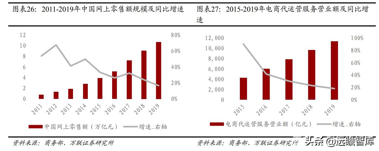 根據(jù)商務(wù)部數(shù)據(jù),2019年我國網(wǎng)上零售額達(dá)到10.63萬億元,同比增長16.5%;代運營市場交易規(guī)模達(dá)1.14萬億,同比增長18%。我國網(wǎng)絡(luò)零售規(guī)模大、增速穩(wěn),而隨著新型電商渠道的增加以及新營銷模式的推廣,線上運營的難度加大,未來代運營市場保持快速增長可期。