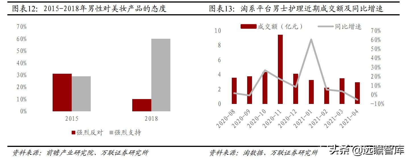 男士香水、護(hù)膚品類快速增長,男性美妝消費的平均價也高于女性。
