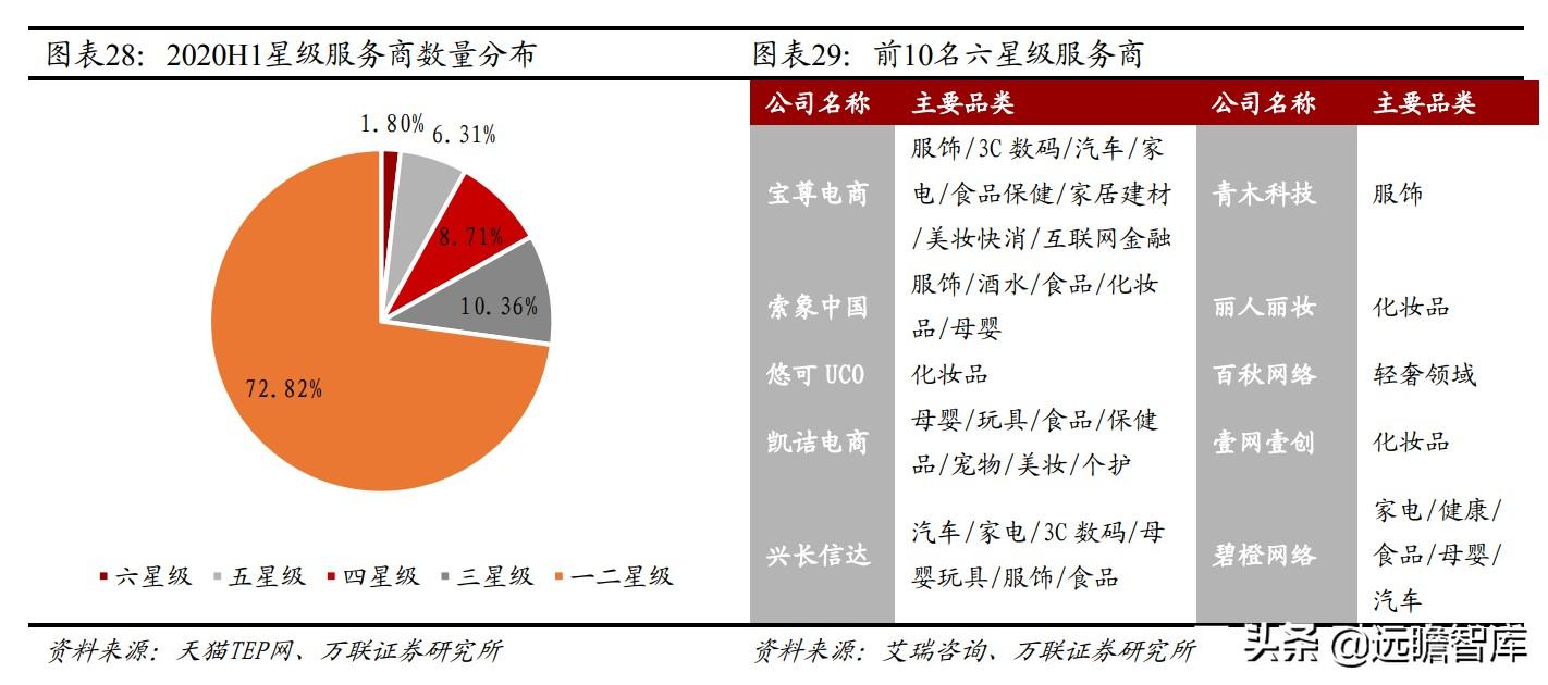 代運營市場入行門檻低,近年來代運營企業(yè)數(shù)量隨著網(wǎng)購經(jīng)濟的發(fā)展而不斷增加。根據(jù)《中國電商服務(wù)業(yè)發(fā)展報告》顯示,2020年上半年,國內(nèi)代運營服務(wù)商數(shù)量達(dá)到 8.9萬家,經(jīng)天貓平臺認(rèn)證的僅1086家,六星級服務(wù)商僅12家,其中,寶尊電商、索象中國、悠可UCO三家則主導(dǎo)了45%的電商營收業(yè)績。