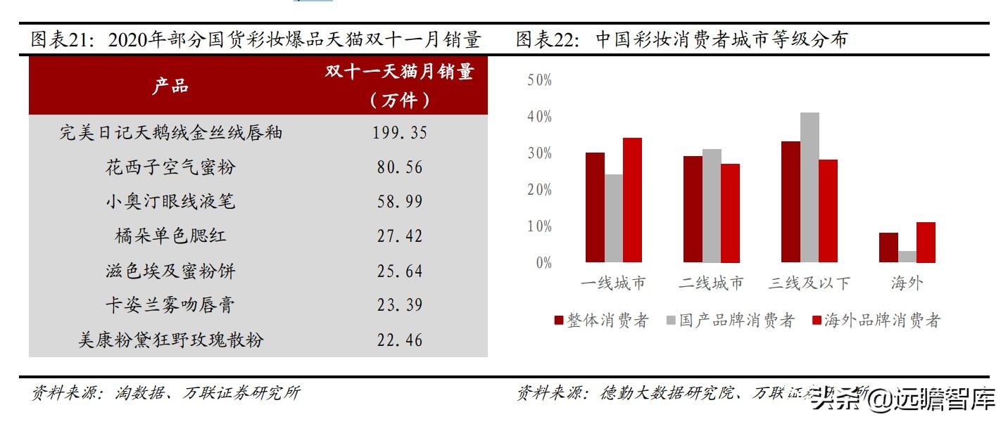 隨著美妝消費人群不斷擴大,相對平價的國產(chǎn)品牌成為很多消費者的入門級產(chǎn)品,給收入普通但對高顏值精致生活有一定追求的三四線城市消費者提供了機會。根據(jù)德勤大數(shù)據(jù)對于國產(chǎn)和海外品牌成交份額比較,彩妝國產(chǎn)品牌消費者在二線城市和三線城市的占比分別為31和41%,相較于一線城市24%的占比而言,有較大增長。