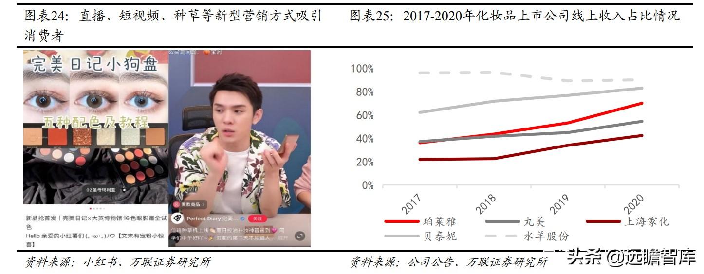 線上成本優(yōu)勢+新興社媒平臺的引流,美妝消費從線下往線上轉(zhuǎn)移。