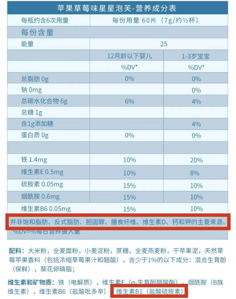 3、維生素B1和鈣前面提到,國標(biāo)GB 10769還對(duì)嬰幼兒輔食泡芙、餅干中的維生素B1、鈣這兩種成分有低含量要求。