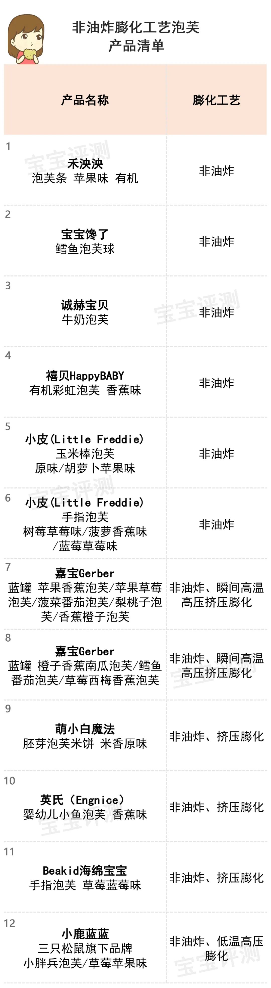 對(duì)于這些宣稱非油炸的泡芙產(chǎn)品,笨爸爸羅列了一份清單,供寶媽們參考。