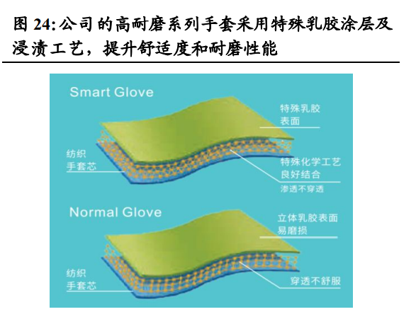 公司深耕行業(yè)多年,手套核心工藝優(yōu)勢突出。公司多年深耕高性能手套 制造領(lǐng)域,積累了豐富的經(jīng)驗,生產(chǎn)技術(shù)優(yōu)勢及產(chǎn)品優(yōu)勢凸顯: 1) 技術(shù)優(yōu)勢:公司經(jīng)過近 20 年的技術(shù)沉淀,擁有成熟的工藝、嚴(yán)格的 質(zhì)量控制和穩(wěn)定的產(chǎn)品性能,通過了 ISO9001:2008 質(zhì)量管理體系認(rèn) 證、BSCI 認(rèn)證,多項產(chǎn)品通過了歐盟 CE 認(rèn)證、美國 ANSI 認(rèn)證、 日本 JIS認(rèn)證或OEKO-TEX Standard100認(rèn)證 等嚴(yán)格的認(rèn)證。