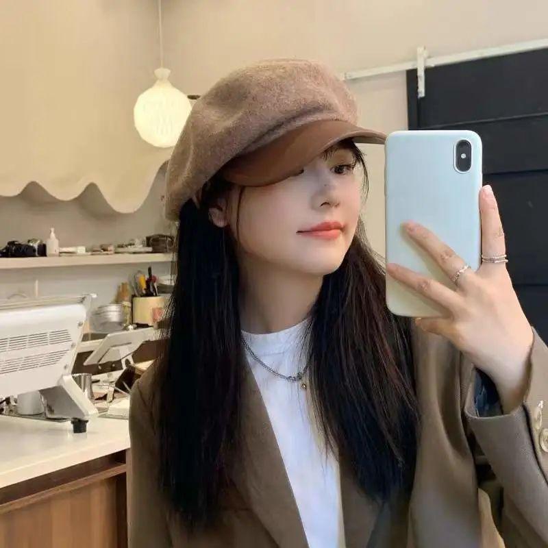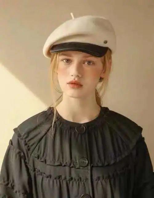 這種帶帽檐的款式更加文藝復古,可以說是把秋冬氛圍感拉滿了(尤其是棕色),感覺戴上就是電影女主角一枚。