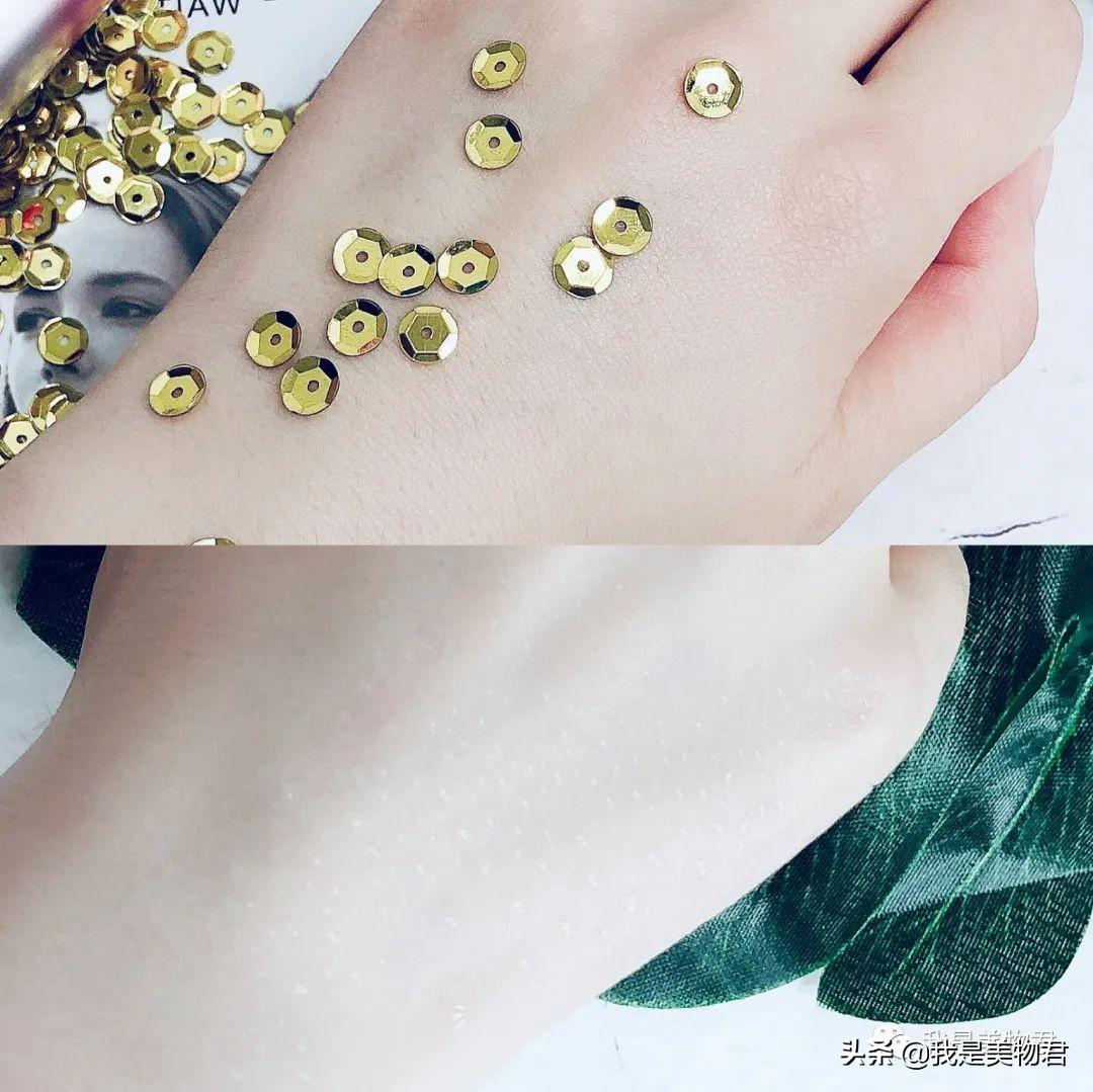 這款防曬隔離霜的清爽程度是好的,成膜后手背上的金閃片少。