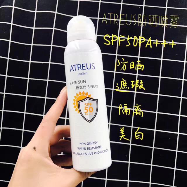 atreus防曬噴霧,這款防曬功能太多,首先我喜歡的是沒酒精、完全可以熄火,聽上去老厲害了同時(shí)這款防曬美白果更好,美白遮瑕果自然就有了,防水果棒棒噠.缺點(diǎn)就是經(jīng)常買不到。