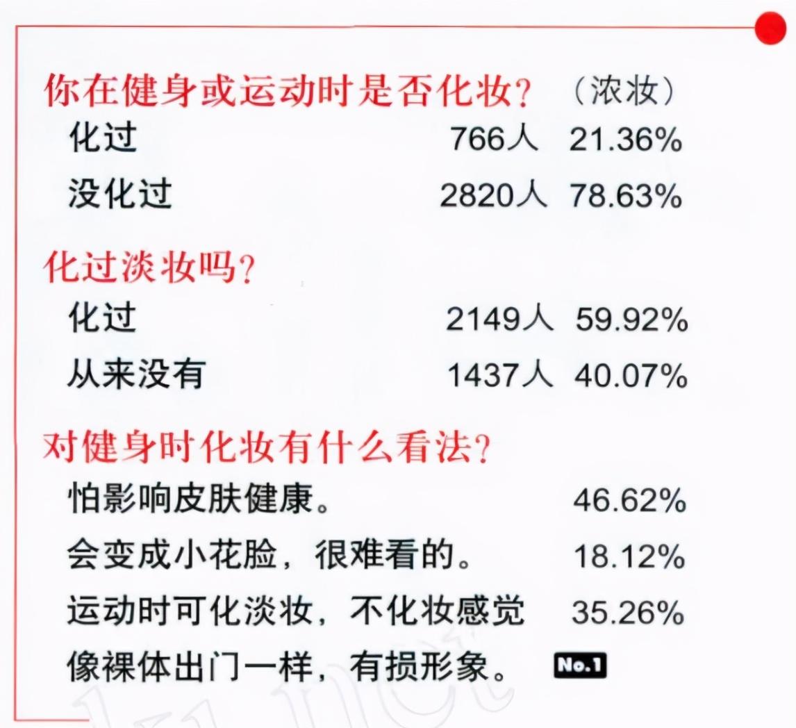 “運動美妝”已成為健身人群的熱點關(guān)注話題。一份關(guān)于“運動時你想化妝嗎”的調(diào)查顯示,有近6成的被采訪者會在健身時化一些淡妝,如果徹底素顏會讓一部分人感覺形象不佳。據(jù)CID消費者智庫數(shù)據(jù)顯示,每周至少進行一次鍛煉身體/參加體育活動的彩妝人群的比例超出50%。但也有46%的受訪者表示,擔(dān)心運動時化妝會影響皮膚健康,這就對美妝產(chǎn)品在運動場景下的防汗防水功能提出了更高的要求。