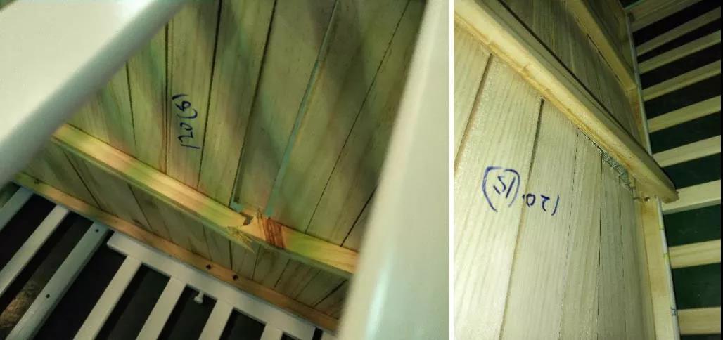 7、板條和旁板要耐沖擊。嬰兒床床頭強度不夠的產(chǎn)品,受到外力沖擊時,旁板板條易斷裂脫落,床頭板也可能斷裂,不僅影響嬰兒床的使用壽命,而且對寶寶造成人身傷害。